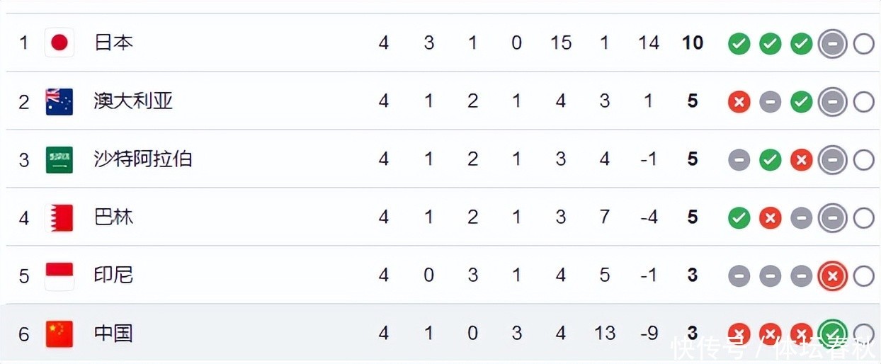是以,与被多半看好的印尼队比较,现时的中国队反而成了C小组的一匹黑马。在限度了与巴林队的比赛后,中国队还有两场关节的比赛要踢。第六轮,国足将在主场迎战日本队,第七轮客场挑战沙特队,这两场比赛的效果将径直决定中国队能否最终踏进小组的前四名。